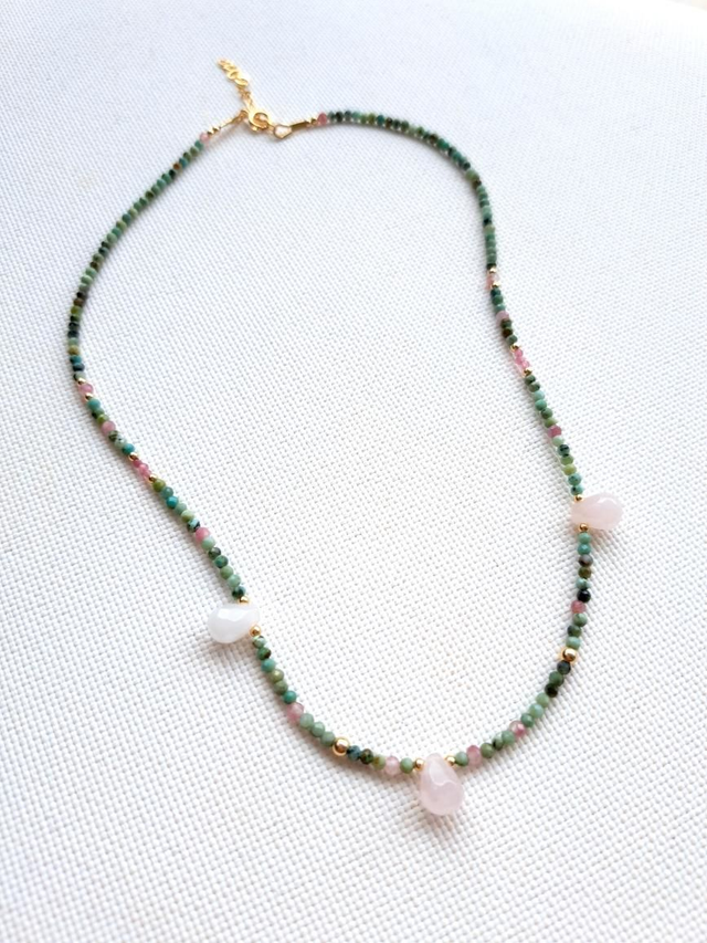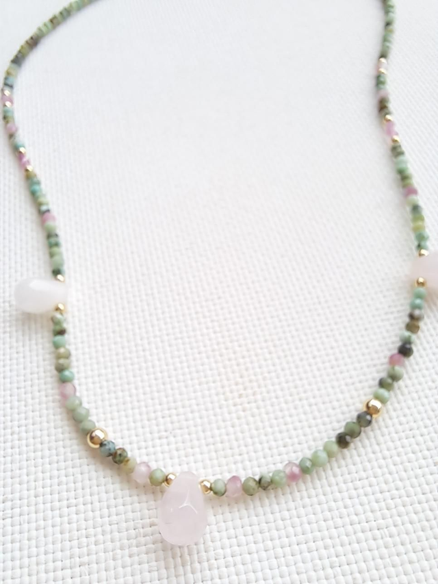 AMAÏA gold-filled - turquoise africaine - tourmaline - quartz rose - collier